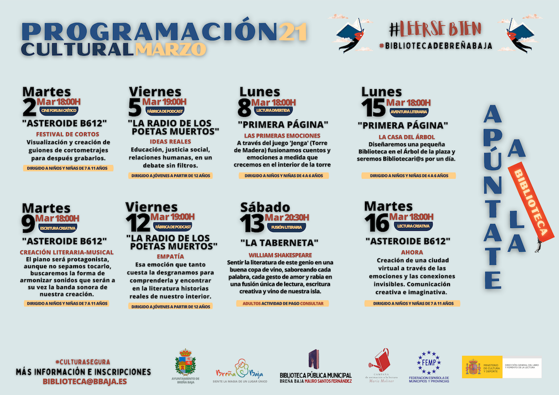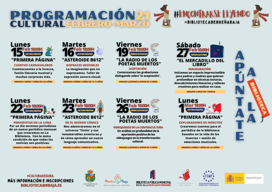 El Ayuntamiento de Breña Baja reabrirá el lunes 15 de febrero la Biblioteca Mauro Fernández Santos con un atractivo y novedoso programa de dinamización que tiene la creatividad por bandera y se dirige a públicos de todas las edades.