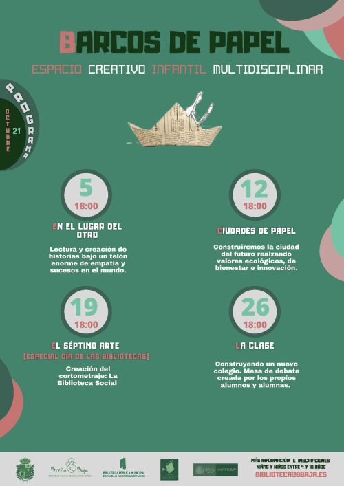 Estas actividades están divididas en 3 bloques por edades: Barcos de Papel (Infantil) los martes, Poesía Viva (juvenil) los miércoles y Espacio Conecta (familiar) los sábados.
