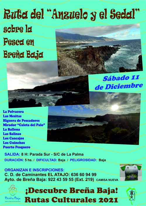 El sábado 11 de Diciembre, el C. D. de Caminantes "El Atajo" y el Ayuntamiento de Breña Baja organizan, dentro del Programa de Senderismo de Breña Baja, la caminata nº 735: Ruta Cultural del “Anzuelo y el Sedal” sobre la Pesca en Breña Baja. Cuenta con la colaboración de la Cofradía de Pescadores de “Nuestra Señora de Las Nieves” y el C. D. de “KingKayak La Palma” de Breña Baja. Con motivo de los actos del programa de Navidad del municipio.