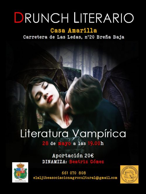 El Drunch Literario estaba previsto para el sábado anterior y versa sobre la “Literatura Vampírica” donde se combina gastronomía y cultura. Promueve y dinamiza Beatriz Gómez. Una forma diferente de acercarnos a las letras en un ambiente distendido y cercano.