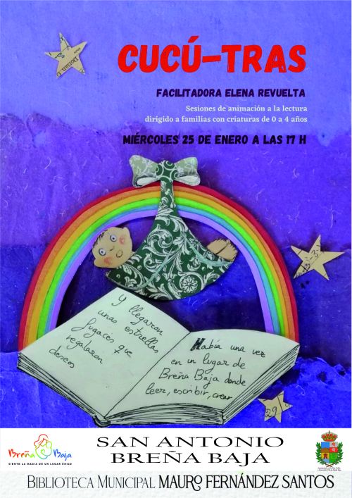 La Concejalía de Cultura del Ayuntamiento de Breña Baja sigue promocionando actividades en la Biblioteca Pública Municipal de Breña Baja "Mauro Fernández Santos" (San Antonio). En esta ocasión, una nueva sesión de “Cucú-Tras” (0-4 años), para el miércoles 25 de enero a las 17 hs y facilitado y dinamizado por Elena Revuelta.