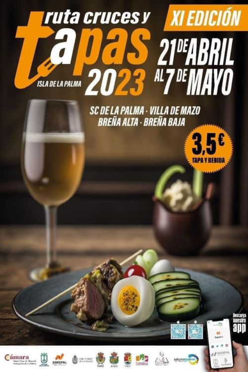 Entre el 21 de abril al 7 de mayo se celebra la XI Ruta de Cruces y Tapas, una iniciativa gastronómica con el firme compromiso de dinamizar la comarca y fusionar gastronomía y tradición, ofreciendo a residentes y visitantes exquisitas tapas elaboradas con lo mejor de cada cocina. Un total de 16 establecimientos de hostelería y restauración de Santa Cruz de La Palma, Breña Baja, Breña Alta y Villa de Mazo participan en esta edición.