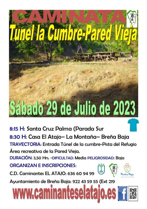 El sábado 29 de julio, el C. D. de Caminantes "El Atajo" y la Concejalía de Deportes del Ayuntamiento de Breña Baja organizan, dentro del Programa de Senderismo de Breña Baja, la caminata nº 825 "Túnel de la Cumbre - Pared Vieja".