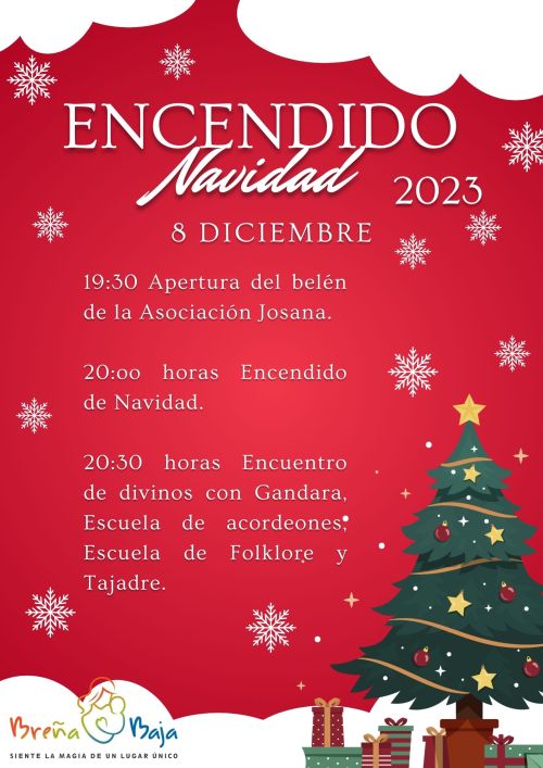 El viernes 8 de diciembre desde las 19.30 hs comenzaran los actos del Encendido Navideño de Breña Baja en el entorno de la Rambla de Los Poetas y Plaza de Las Madres de San José, por parte del Ayuntamiento de Breña Baja y que contara con la participación de varias agrupaciones y colectivos para el arranque oficial de estas fechas tan entrañables y llena de actos para toda la población.