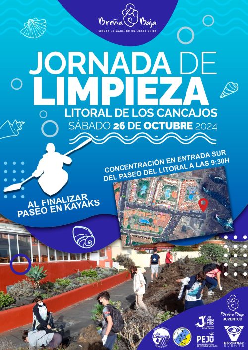 La Concejalía de Juventud del Ayuntamiento de Breña Baja organiza una jornada de limpieza del Paseo del Litoral de Los Cancajos para el sábado 26 de octubre a las 9.30 hs. bajo la denominación "Los Cancajos sin huella: Juntos por un litoral limpio". Al finalizar tendremos una exhibición/paseo de Kayaks en la playa del Varadero (Los Cancajos) por el Club de Kayak “KingKayak La Palma” de Breña Baja.