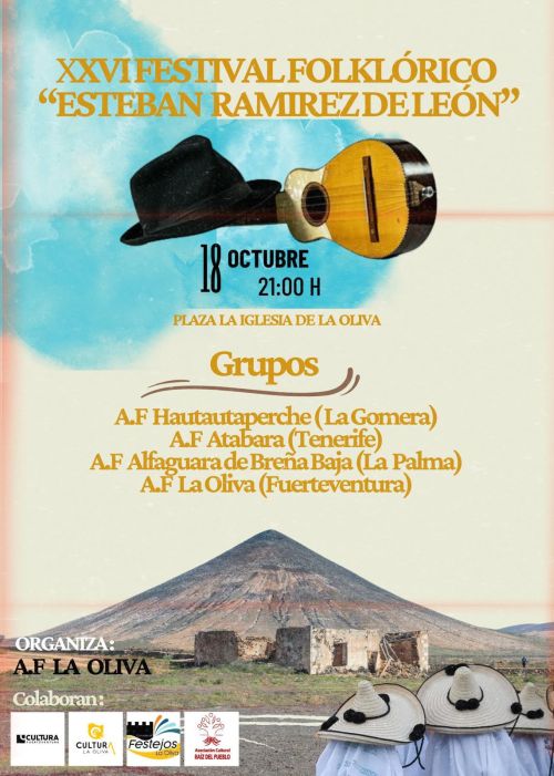La Agrupación Folclórica “Alfaguara” de Breña Baja el viernes 18 de octubre en la Plaza de la Iglesia de La Oliva (Fuerteventura) a las 19:00 h. participa en el XXVI Festival Folclórico “Esteban Ramírez de León”. Además contara con las agrupaciones “Hautacuperche” (La Gomera), “Atabara” (Tenerife) y “La Oliva” (Fuerteventura).