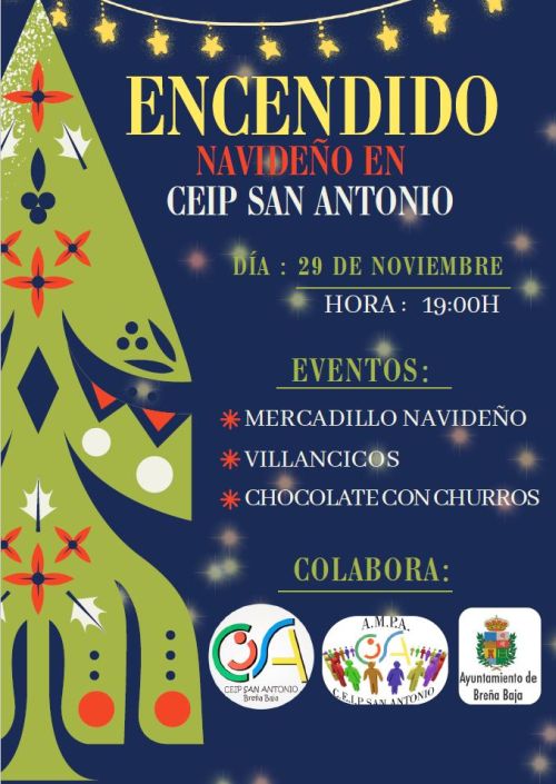 El viernes 29 de noviembre a partir de las 19 hs tendrá lugar el Encendido Navideño del Ceip San Antonio con varias actividades abiertas a todos los públicos. El centro cuenta con la colaboración del Ampa Ceip San Antonio y el Ayuntamiento de Breña Baja para llevar a cabo esta actividad por segundo año consecutivo.