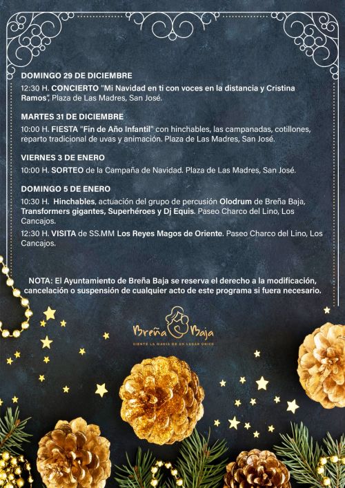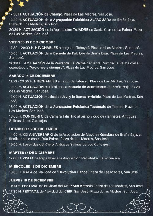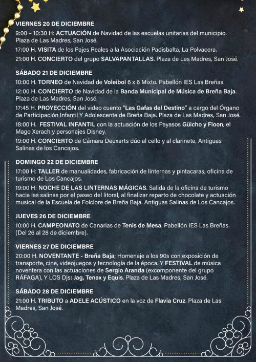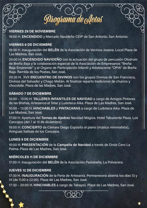 Con el Encendido Navideño en la Plaza de Las Madres el viernes 6 de diciembre y hasta el 5 de enero de 2025 se desarrollan un amplio abanico de actividades en el marco del Programa de Navidad en Breña Baja que despliega el Ayuntamiento de Breña Baja en este municipio.