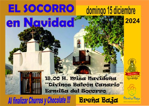 El domingo 15 de diciembre llega la Navidad al barrio de El Socorro a través de la Misa Navideña en la Ermita en honor a Nuestra Señora del Perpetuo Socorro que animara el grupo de divinos “Balcón Canario”, a las 18 hs. Al finalizar habrá churros y chocolate.