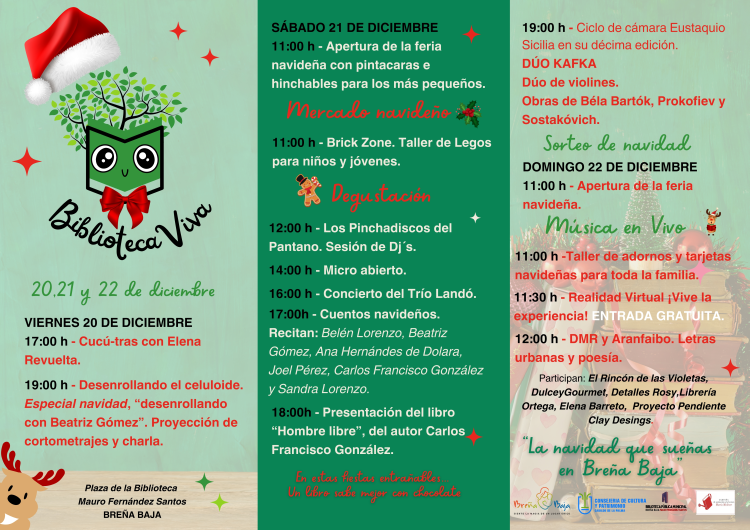 Del 20 al 22 de diciembre la Concejalía de Cultura del Ayuntamiento de Breña Baja ha elaborado un programa de actividades denominado “Biblioteca Viva” en la Biblioteca Pública Municipal de Breña Baja "Mauro Fernández Santos" (San Antonio). Bajo la coordinación y producción de Beatriz Gómez, cuenta con la colaboración de la Consejería de Cultura y Patrimonio del Cabildo Insular de La Palma.