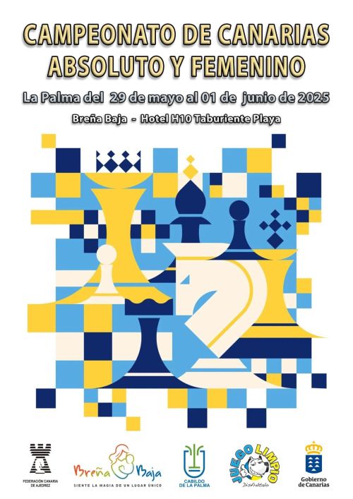 Del 29 de mayo al 1 de junio, tendrá lugar en los Salones del Hotel Taburiente Playa, en los Cancajos, los Campeonatos de Canarias de la categoría absoluta y femenina, que reunirá en La Palma a los mejores jugadores federados de las Islas Canarias.
