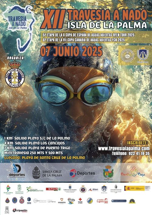 El sábado 7 de junio a las 8 hs saldrá la prueba de 4 kms. de la XII Travesía a Nado “Isla de La Palma”, desde la playa de Los Cancajos hasta S/C de La Palma. Esta prueba deportiva esta organizada por el Real Nuevo Club Náutico de S/C de La Palma, Gobierno de Canarias, Cabildo de La Palma y el Ayuntamiento de Breña Baja, entre otras entidades.