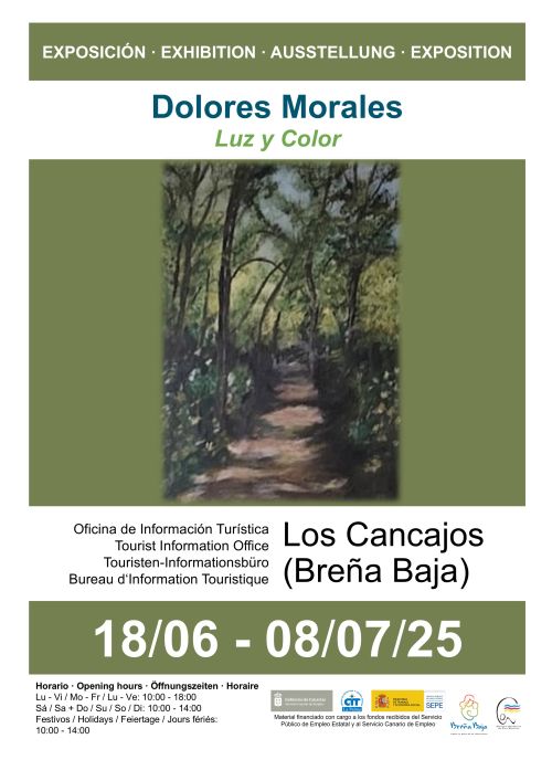 Del 18 de junio al 8 de julio la Oficina de Información Turística de Los Cancajos acoge la Exposición de cuadros al óleo "Luz y Color" de Dolores Morales en los horarios de apertura de la oficina. Con la colaboración del Ayuntamiento de Breña Baja y el Cit Tedote.