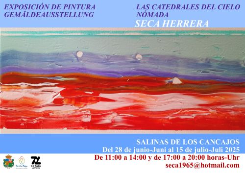 Del 28 de junio al 15 de julio, exposición pictórica de Seca Herrera, en las Antiguas Salinas de Los Cancajos bajo la denominación “Las Catedrales del Cielo Nómada”, del artista Seca Herrera. Cuenta con la colaboración del Ayuntamiento de Breña Baja, entre otras entidades. Se podrá visitar de 11 a 14 hs y de 17 a 20 hs.