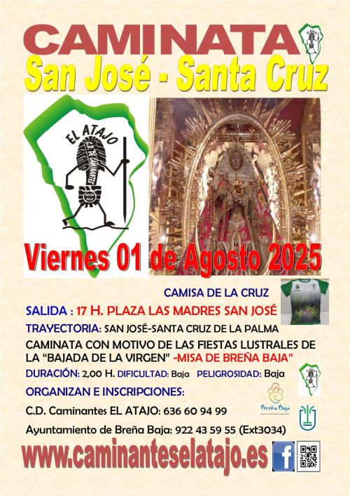 Durante el mes de agosto con motivo, especialmente, de las Fiestas Lustrales de la Bajada de la Virgen de Nuestra Señora de Las Nieves 2025 el C. D. de Caminantes "El Atajo" tiene previsto organizar hasta cuatro caminatas relacionadas con este acontecimiento y dentro del marco del Programa de Senderismo de Breña Baja, que se lleva conjuntamente con el Ayuntamiento de Breña Baja.