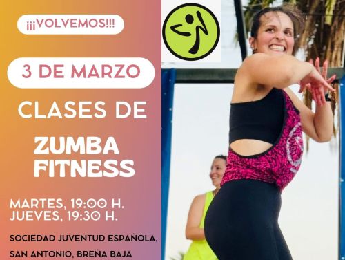 Tras algunos meses de espera, para el mes de marzo vuelven las clases de Zumba Fitness a la Sociedad Juventud Española de San Antonio, a cargo de Marjorie Lorenzo. Cuenta con la colaboración del Ayuntamiento de Breña Baja.