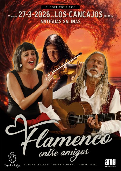 El viernes 27 de marzo, 20 hs, concierto de “Flamenco entre amigos” en las Antiguas Salinas de Los Cancajos en el marco de su duodécima gira europea. Organiza Ayuntamiento de Breña Baja y produce Amy Producciones.