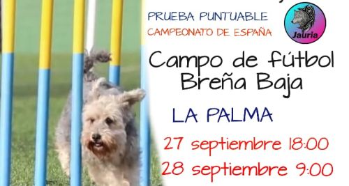 El fin de semana del 27 y 28 de septiembre en el Estadio Municipal de Breña Baja (San José) una prueba puntuable Campeonato de España (Agility). Arranca el sábado 27 a las 18 hs y continuara el domingo 28 a las 9 hs y la entrega de trofeos esta prevista para las 13 hs.