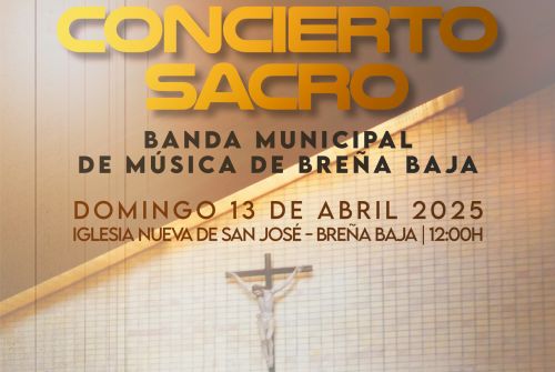 La Banda Municipal de Música de Breña Baja ofrecerá un Concierto Sacro de Semana Santa el Domingo de Ramos 13 de abril a las 12 hs en la Iglesia Nueva de San José, promovido por la Concejalía de Cultura del Ayuntamiento de Breña Baja, bajo la dirección musical de D. Pablo Arrocha Morales. Entrada gratuita.