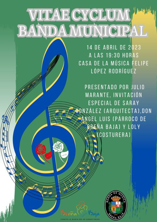 El viernes 14 de abril a las 19.30 hs la Banda Municipal de Música de Breña Baja ofrecerá una actuación especial bajo el titulo “Vitae Cyclum” en los exteriores de la Casa de la Música “Félipe López Rodríguez” de San José con la finalidad de presentar su nuevo uniforme y el proyecto de ampliación de la Casa de la Música por la arquitecta Saray González.