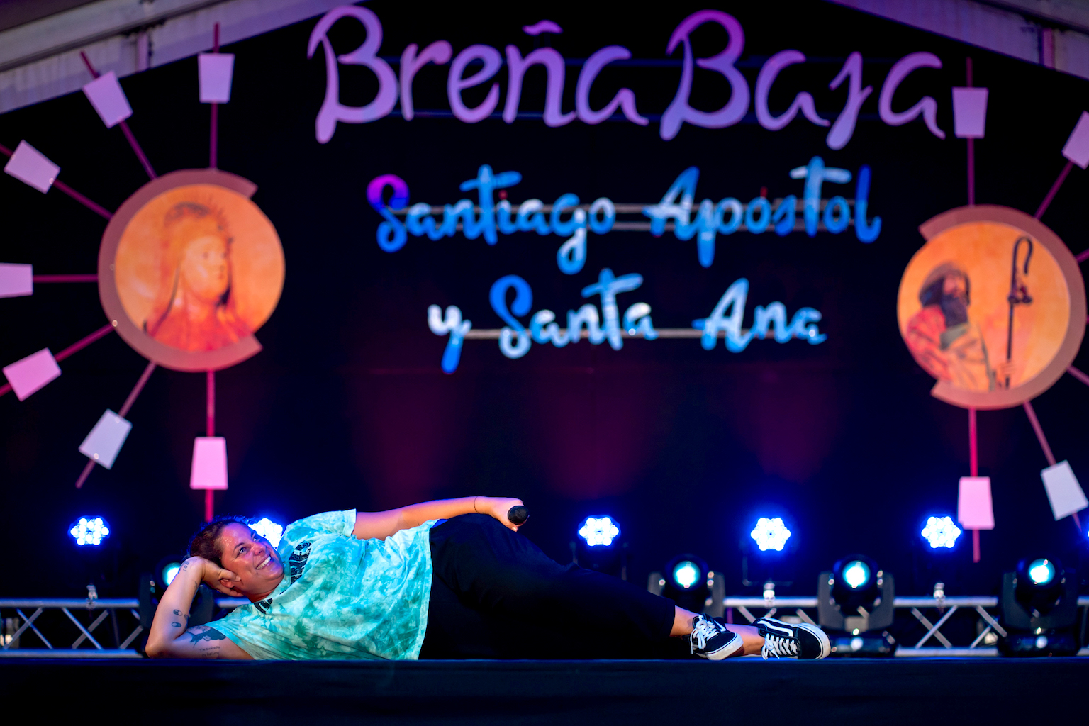 Poco antes, la Iglesia Nueva, acogió la Solemne Función Religiosa en honor a Santiago Apóstol y Novena a Santa Ana, una misa cantada a cargo de la Agrupación Gándara. Tras la Loa, cerrada con un colorido juego de juegos artificiales sobre San José, llegó el momento para el humor a cargo de la cómica Omayra Cazorla, sobre una repleta Plaza de las Madres.