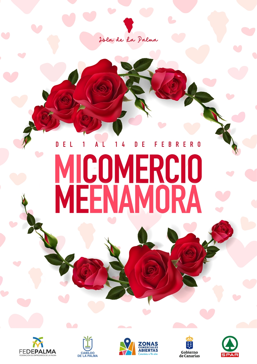 “Mi Comercio Me Enamora” se prolongará desde el 01 al 14 de febrero del 2022, en todos los comercios asociados de Fedepalma y pertenecientes a las siguientes asociaciones y ayuntamientos: Asociación de Comerciantes Zona Abierta – ACZA; Asociación Confederación de Empresarios Tazacorte – COEMTA; Asociación de Empresarios el Paso Crece; Asociación de Empresarios de la pequeña y mediana Empresa de Breña Alta Pymesbalta; Asociación de Comerciantes y Empresarios de San Andrés y Sauces – ACE; Asociación Empresarial de Barlovento; AEPA ZCA Santa Cruz de La Palma; Ayuntamiento de Breña Baja; Ayuntamiento Villa de Garafía, Ayuntamiento Villa de Mazo; Ayuntamiento de Puntagorda; Ayuntamiento de Tijarafe, Ayuntamiento de Fuencaliente y Ayuntamiento de Puntallana.